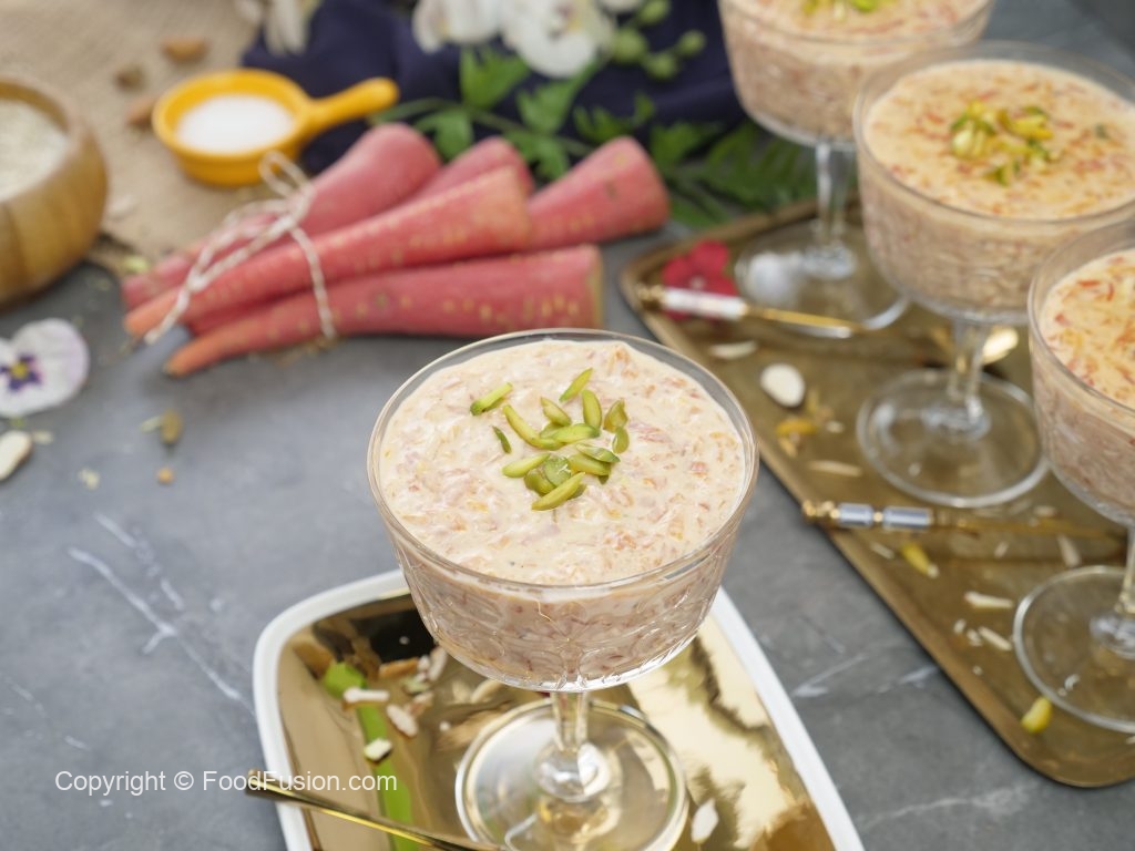 -Grated gajar aur ground chawal dal ker ache tarhan mix karein aur ubal anay ka bad darmiyani ancch per 5-6 minutes kliya paka lein,partially dhak dein aur halki ancch per 18-20 minutes kliya paka lein aur bech bech mein chamcha chalatay rahein.