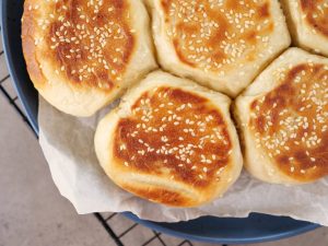 -Grease thick bottom frying pan with cooking oil,place dough balls (give a little space between dough balls),cover with cling film & let it proof for 30 minutes.