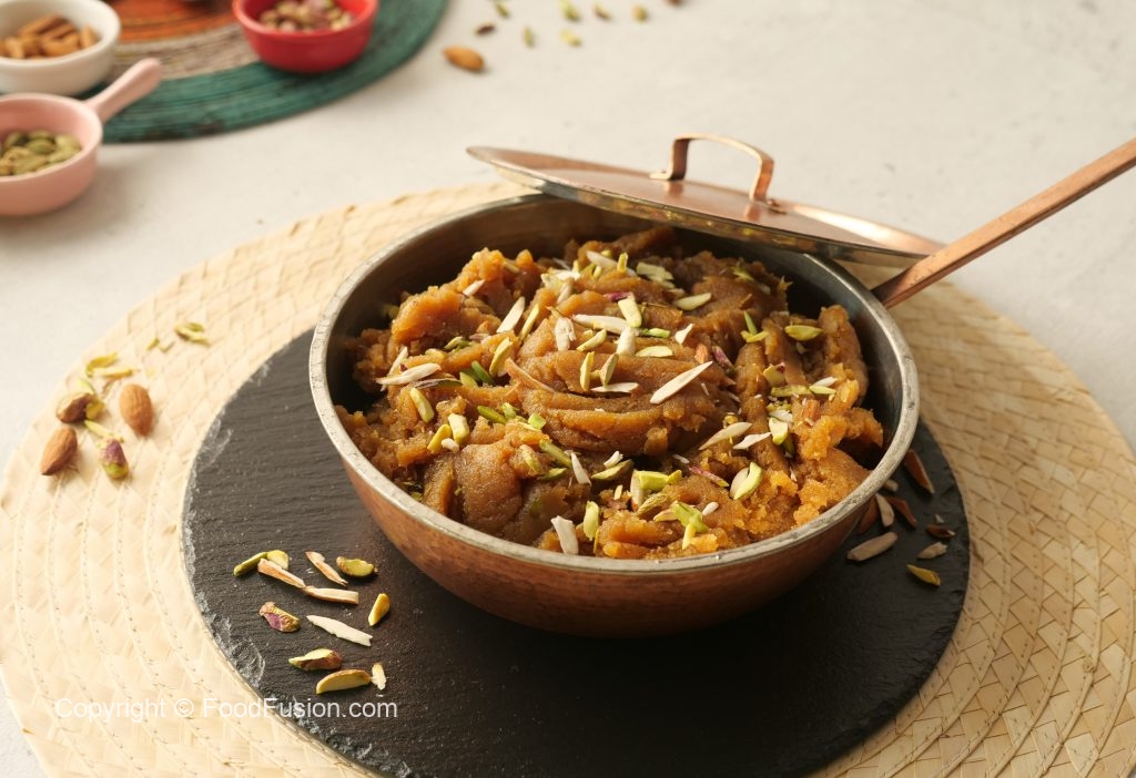 Tayyar sheera dal kar achi tarah milayen aur halki ancch per ek saath ho janay & ghee alag ho janay tak paka lein (8-10 minutes) aur musalsal mix kertay rahein.