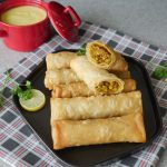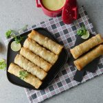 Samosa sheet/manda patti lein aur tayyar filling dal ker tamam sides ko fold ker ka roll ker lein aur maida ka paste laga lein.
