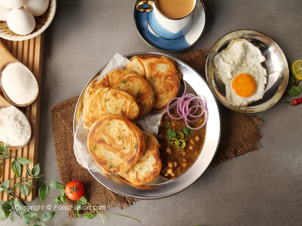 Bun paratha ko chanay ka salan, half fry anda ya chaye ks ath serve karen!