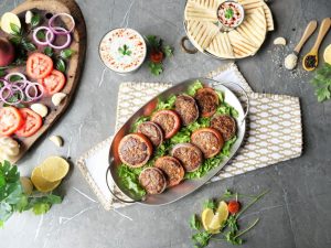 In a bowl,add beef mince,reserved chopped onion ½ cup (reserve ½ Cup for yogurt sauce),reserved chopped tomatoes ½ cup (reserve ½ Cup for yogurt sauce),ginger garlic paste,salt,cumin powder, paprika powder,black pepper powder,red chilli powder,breadcrumbs,egg,lemon juice,fresh coriander,mix well & marinate for 2-3 hours.