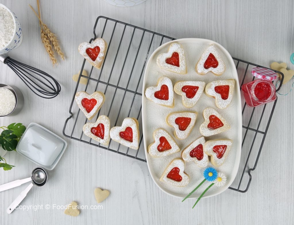 We all love Jam hearts but now we can make them at home with this fool proof recipe so that you can share with friends and family. For best results use nupur butter. #Happycookingtoyou #foodfusion #digitalammi #pakistanicooking #arraywah #nurpurbutter #Nurpur
