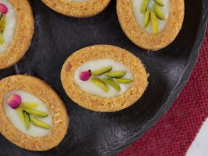 -Garnish with pistachios,dried rose petal & serve (makes 14).