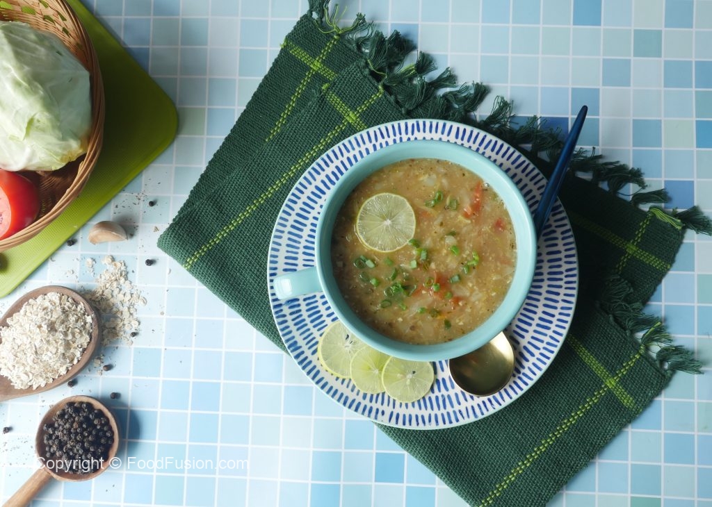 Now add dissolved oats mixture,mix well and cook until soup is thick (approx. 2-3 minutes).